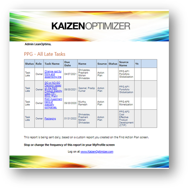 There are three ways to update Kaizen tasks that have been assigned to you...