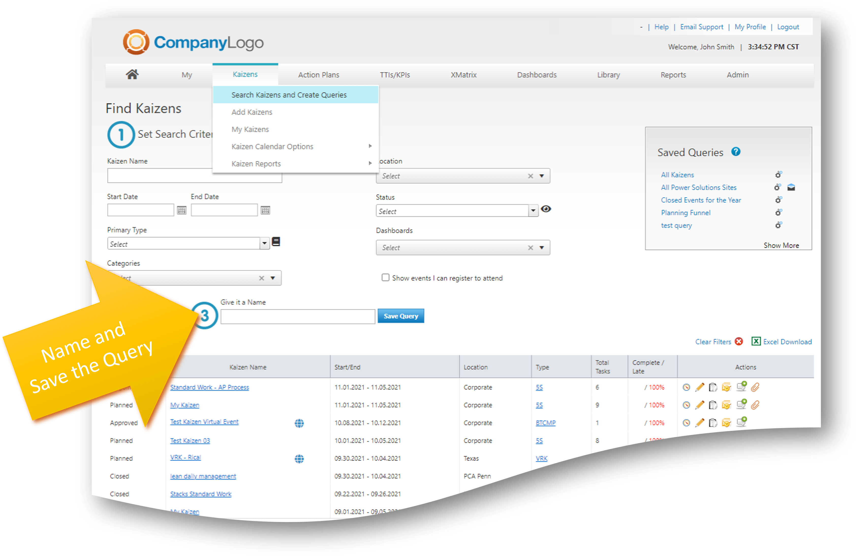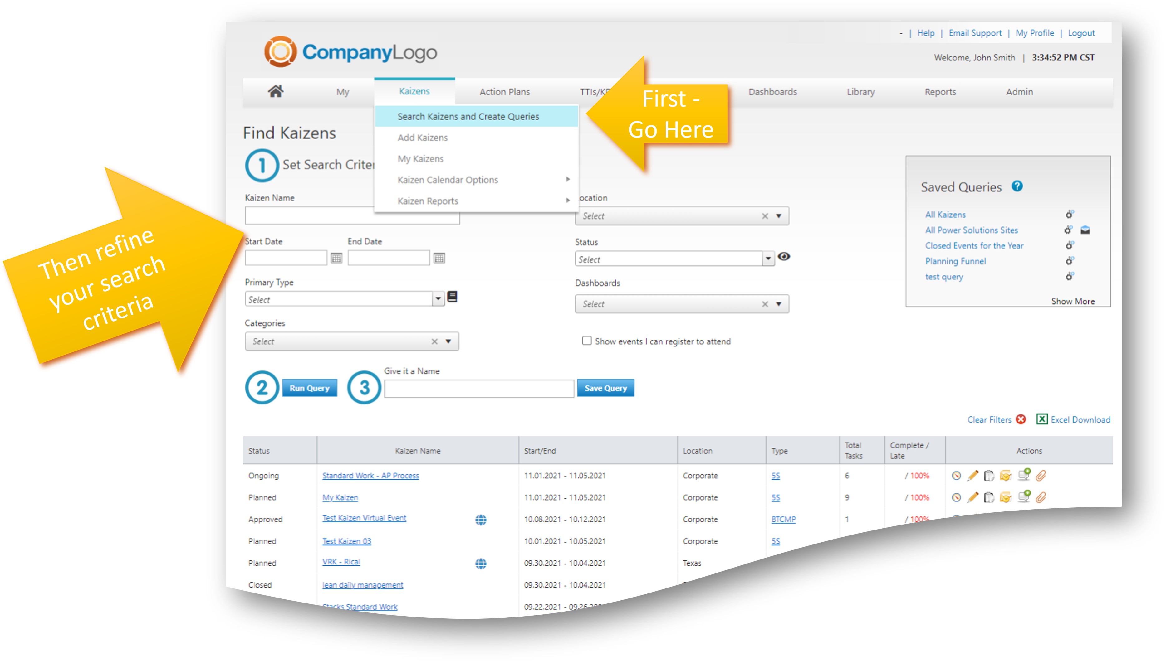 Navigate to the Find Kaizens and Create Queries Screen